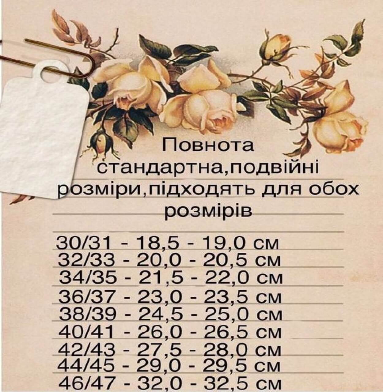 Доступні розміри вказані в описі під кожною парою капців, а довжина устілки — на останньому фото.